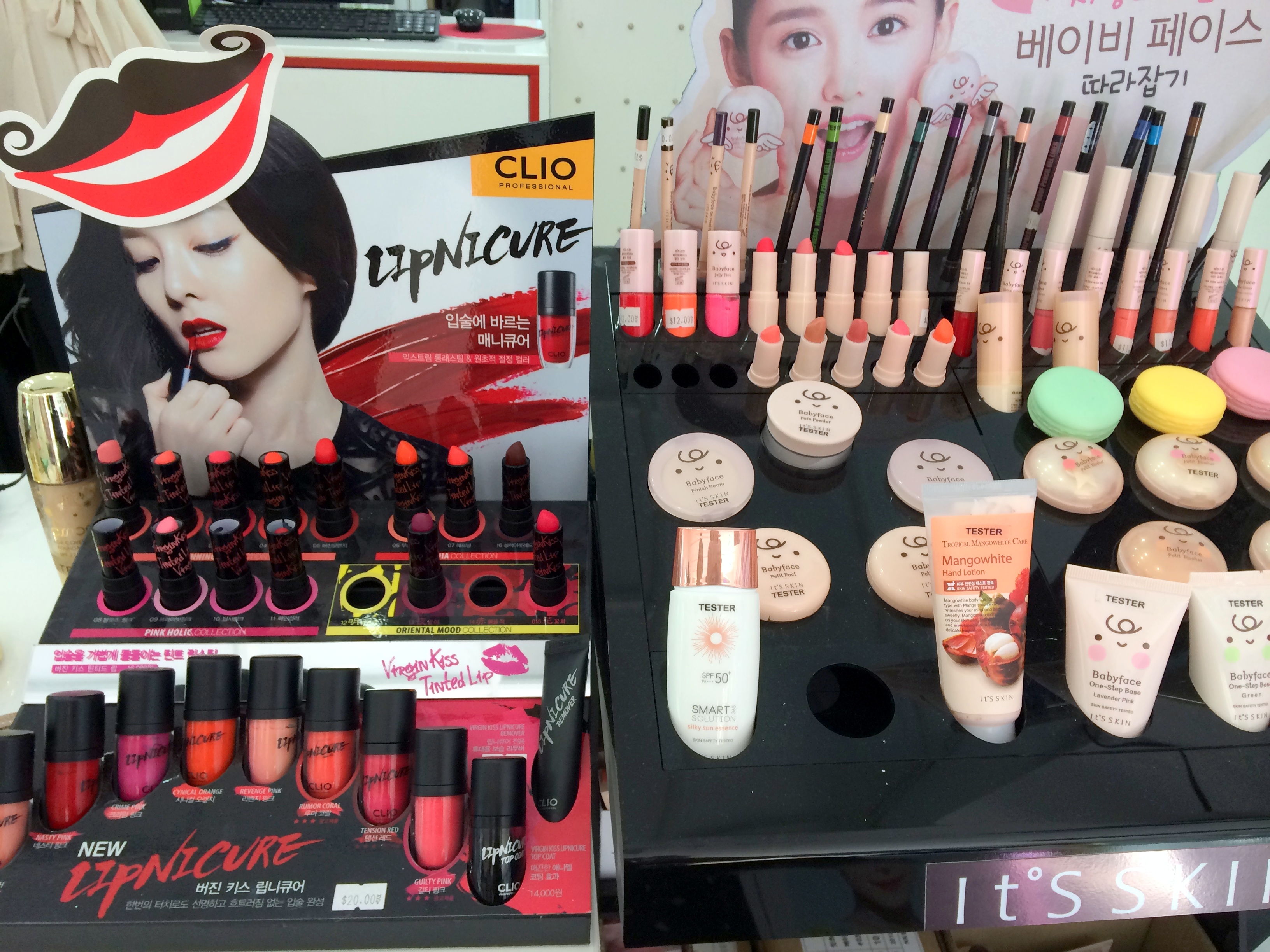 • Pretty much every store that sold Korean makeup sold Clio Gelspresso eyeliners and the full range of Peripera lip products and It’s Skin Babyface makeup.