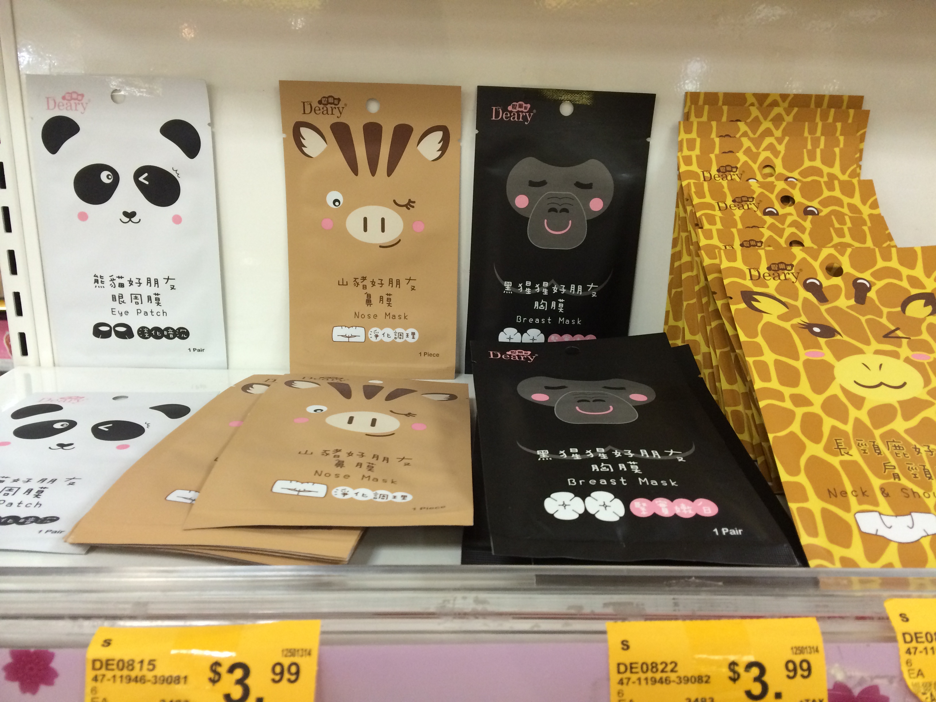 Sheet masks for EVERY part of the body. Mine rang up as “Deary Monkey Breast Buddy”