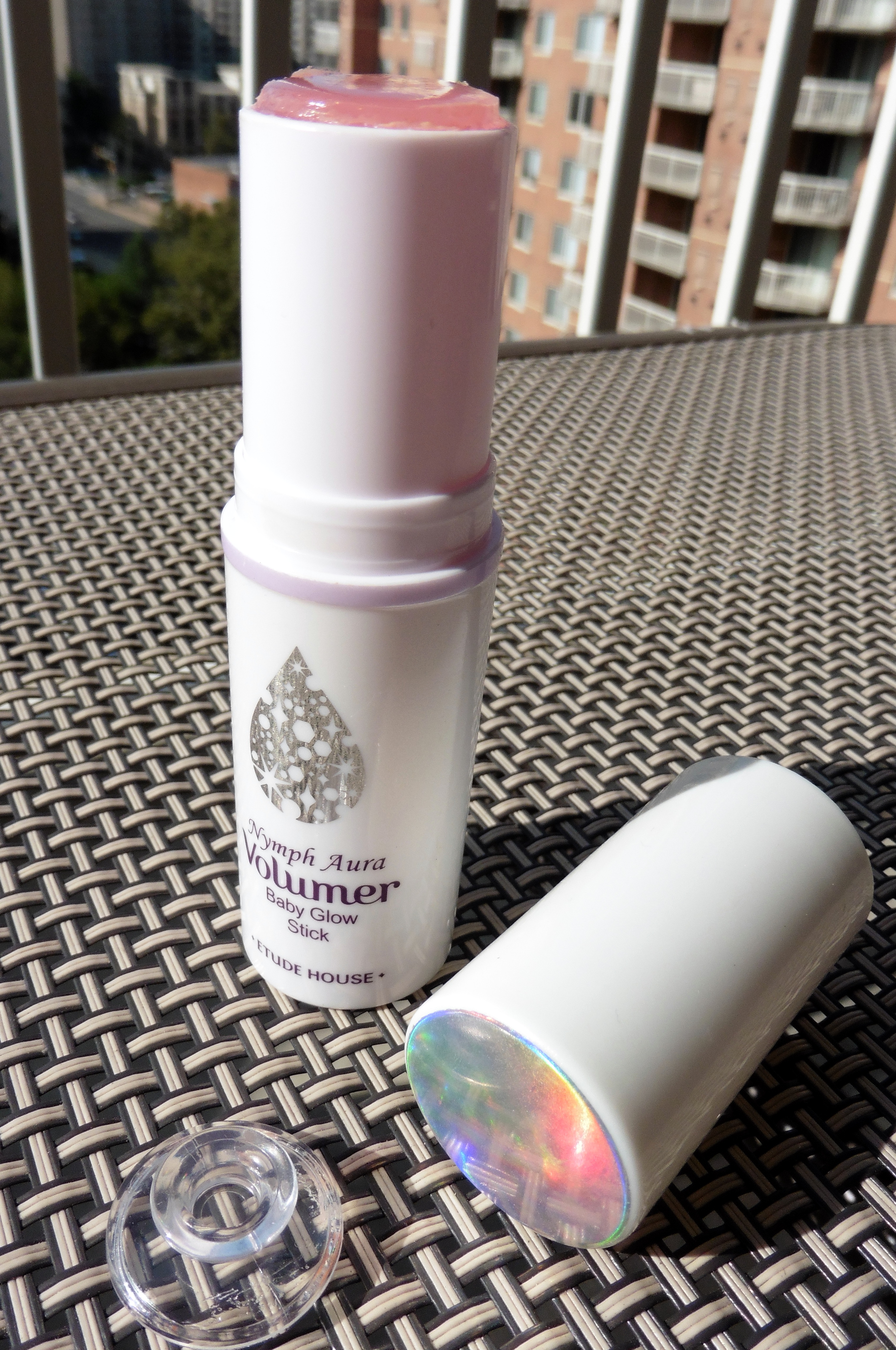On my neverending quest for glowy K-star skin, I tried Etude House’s Nymph Aura Volumer Baby Glow Stick. Etude House makes various Nymph Aura Volumers in liquid form. (Volumer=makeup that gives a dewy, shiny, plump look. It’s often liquid and can be mixed into liquid foundation and BB cream.)