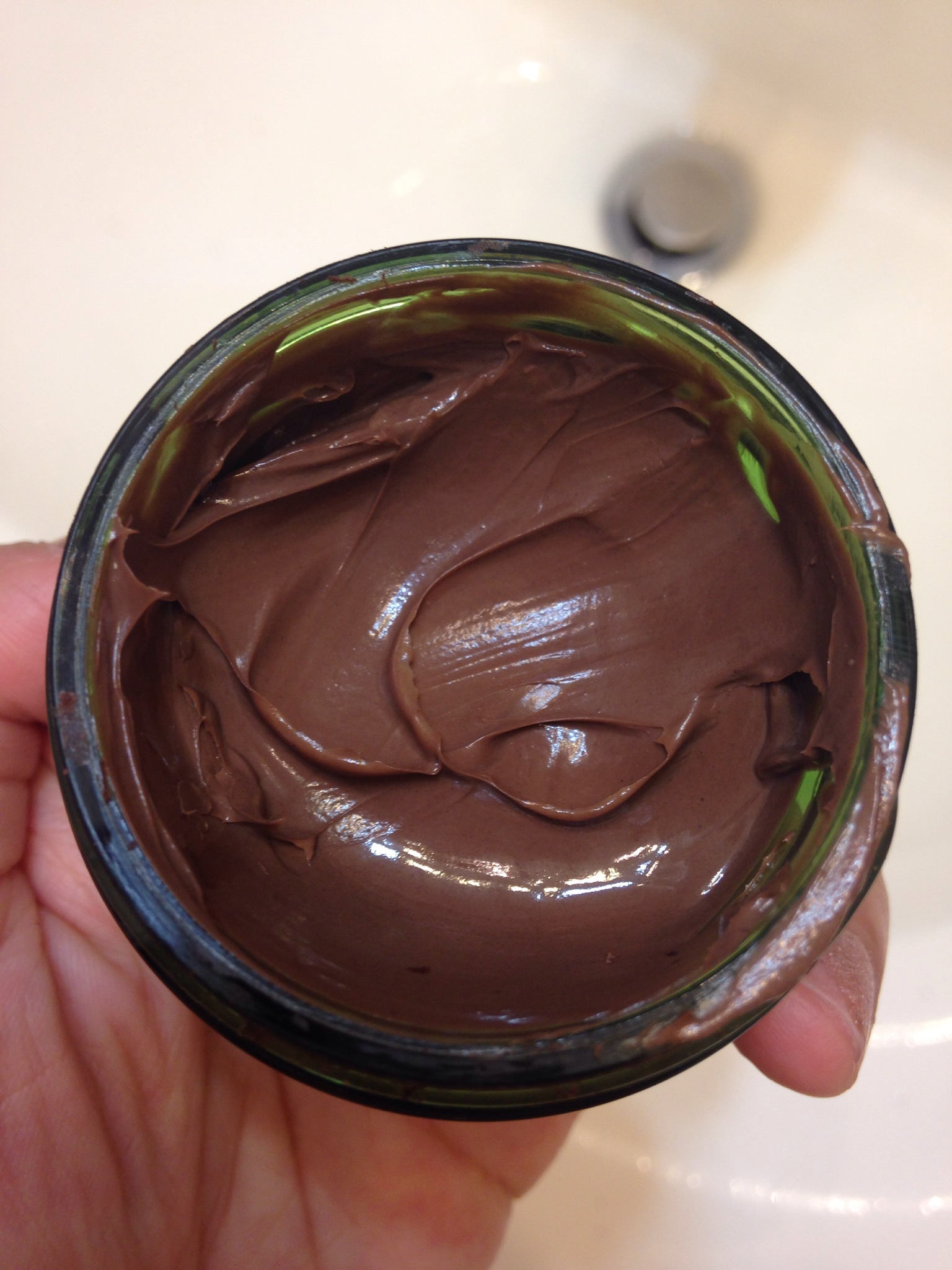 As you can see from the jar, it looks like delicious chocolate frosting that you can smear all over your face. It does NOT taste like frosting. Yes I tried a little just to see. It has no taste…maybe semi salty…and any slight taste does not match that delicious smell.