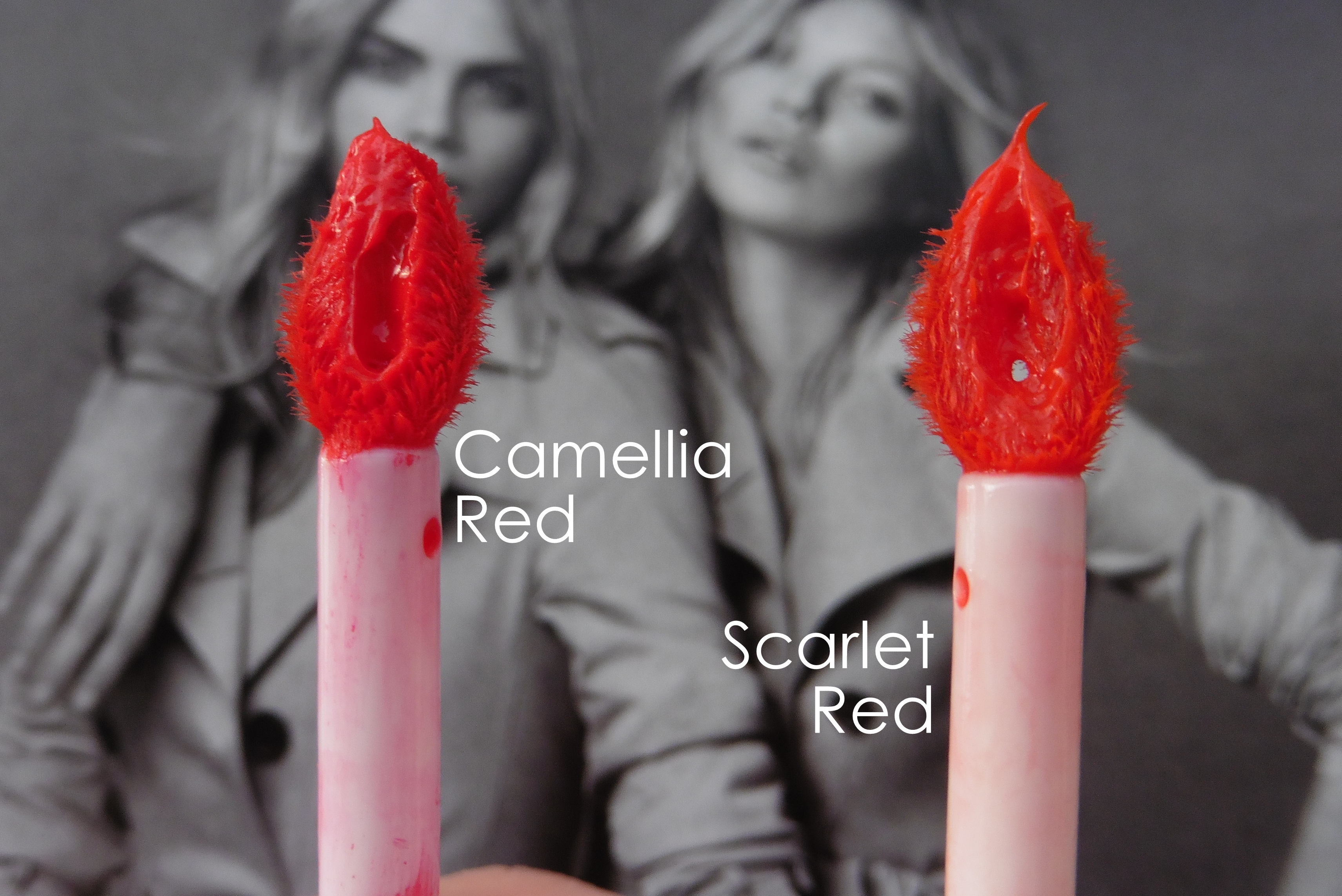 Compared to Scarlet Red, Camellia Red is not nearly as warm, orangey, or bright. Camellia Red is actually a lot softer and lighter than expected.