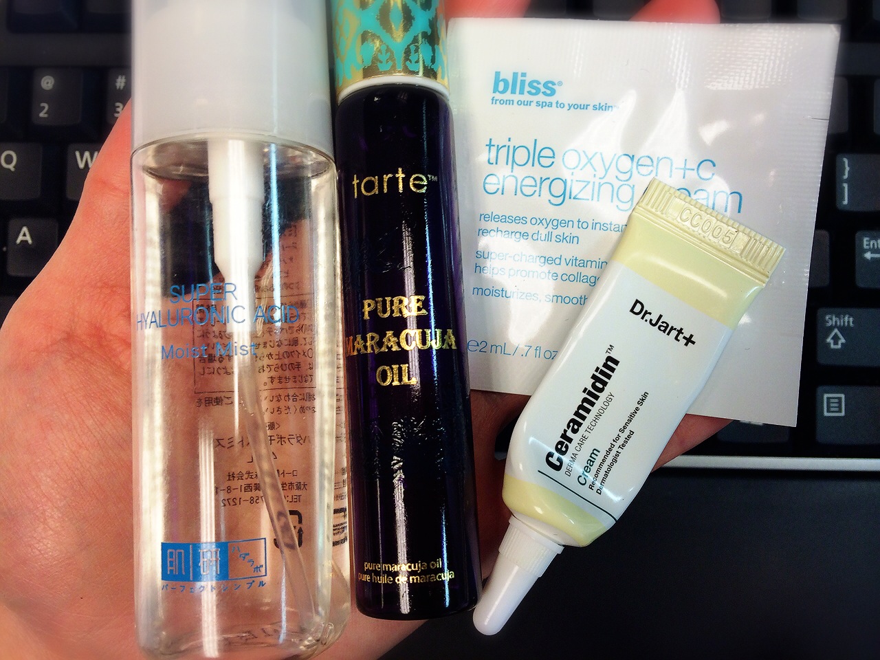 Recommendations: Hada Labo Super Hyaluronic Acid Moist Mist and Tarte Maracuja Oil.