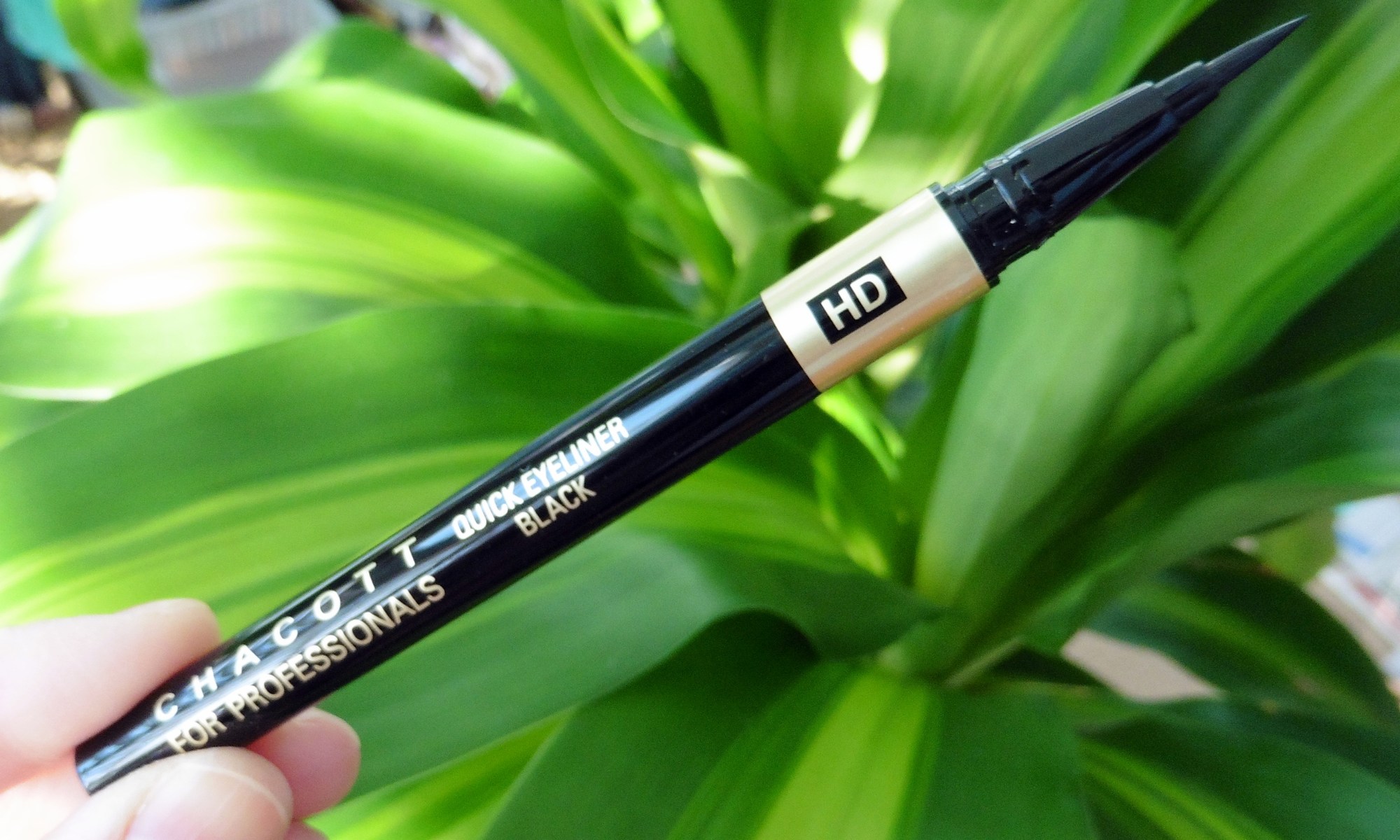 The Chacott Quick Eyeliner in 356 Black ($18 for 0.016 oz. at Chacott’s online store or oo35mm) claims to be appropriate for HDTV. I don’t know about that, but it is a saturated, glossy, jet black, waterproof formula that applies easily and precisely through a brush tip. It’s my new favorite eyeliner, able to survive all day on hooded, oily eyelids.