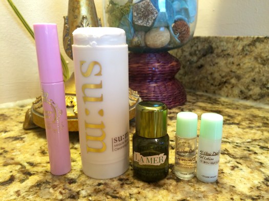 I didn’t quite pare down my skincare routine for this trip. You’ll notice that my routine still contained numerous steps. I did change it up in several ways though, bringing travel-only items, samples to test, and self-tanner.