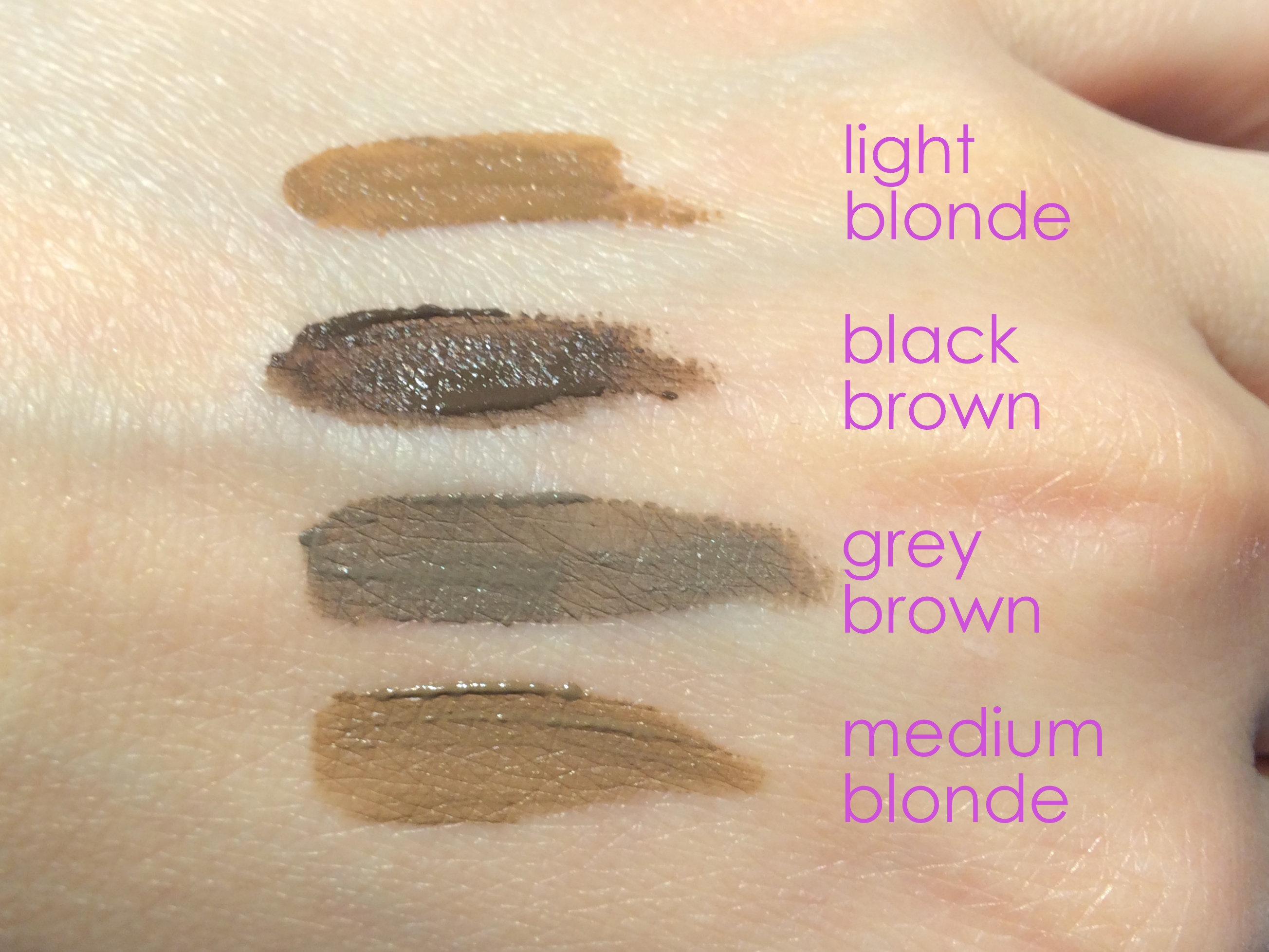 I eagerly swatched all the colors, which all leaned warm except for the Grey Brown: Light Blonde, Black Brown, Grey Brown (Sephora calls this Grey Blonde), and Medium Blonde. The texture is a matte, creamy liquid.