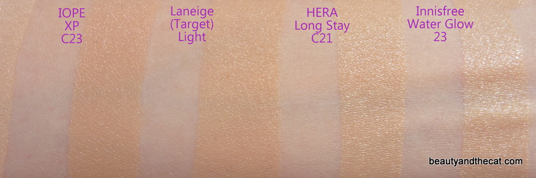 05 IOPE XP Laneige HERA Long Stay Innisfree Water Glow Cushion Swatches ReviewThere you have it! To recap: