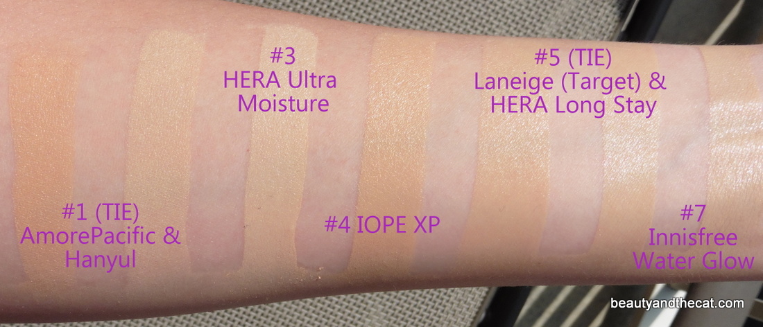 03 AmorePacific Hanyul HERA IOPE Laneige Innisfree Cushion ComparisonSophie’s Choice Angela’s Rankings Starting with Most Loved