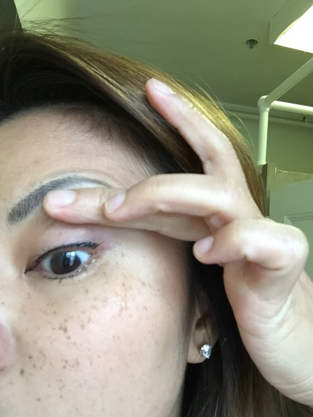 This is 24 hours after my eyeliner (first time for eyeliner) tattoo procedure and brow retouch. My eyelids look large and pretty as if I’d gotten eyelid surgery but this is swelling, ladies. From a thousand pin pricks of tattoo ink into your lash line. Does it hurt? Like a motherfker! But it’s damn worth it.