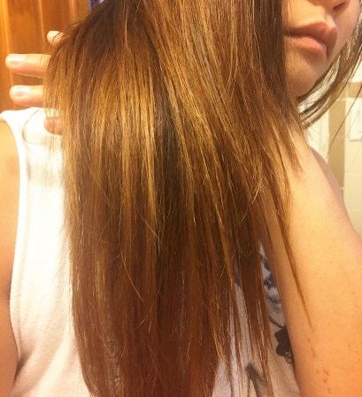 After bleaching the hell out of the ends of my hair for a belayage ombré new ‘do, I was left with straw ends. Ok it’s not THAT bad but it’s pretty dry from its previous condition. This was me right after 4.5 hours of being at the salon to get blond tips: