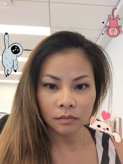 I like smearing foundation instead of using the Korean patting technique. I feel that patting does NOT create even coverage but you end up with blotchy patches, unless of course you’re a blending expert. Here’s the foundation in action below. Built to a medium 2-layer coverage. No retouch or filter on the photo, no other face product. This is in unflattering florescent office lighting too. Not bad eh?