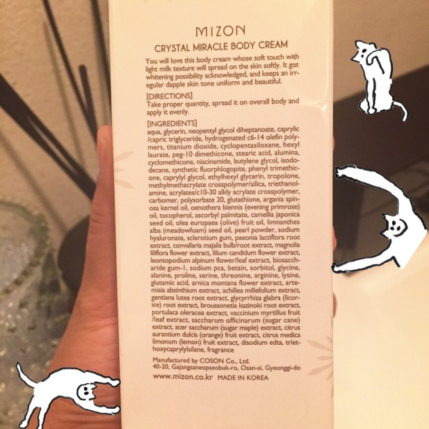 So that’s the secret of this “miracle”: it contains titanium dioxide pigment which makes your skin temporarily chalky with it. Whitening isn’t quite the word. I mean my skin isn’t lighter. It just appears to have a white film over it. Similar to wearing a toupee: the illusion of having hair doesn’t actually make you have hair. While the effect of the cream is “whitening” it’s that weird pasty chalk that is temporary at best. Very much like those “brightening” and “whitening” makeup that those old school Korean ladies push on me when I go shopping.