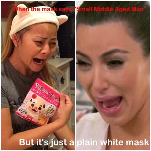 I already ripped the top off, but the only English words on this sheet mask package was “small middle aged man.” Is it FOR the small middle aged men demographic? Is it a cartoon printed sheet mask that looks like a small middle aged man? Is it made of small middle aged man extract?