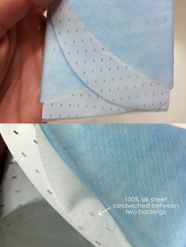 Update: My conclusions were reinforced after I used the My Scheming Black Pearl Brightening sheet mask (link to Renee’s review). That one’s also silk (at least partially), super thin, clings tight enough to allow me to walk around in it, dries evenly, and feels smoother (not as coarsely woven)–so it didn’t feel uncomfortable as it dried.