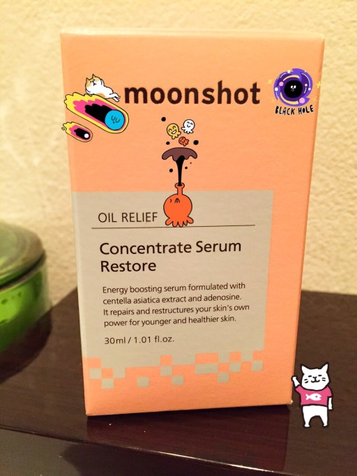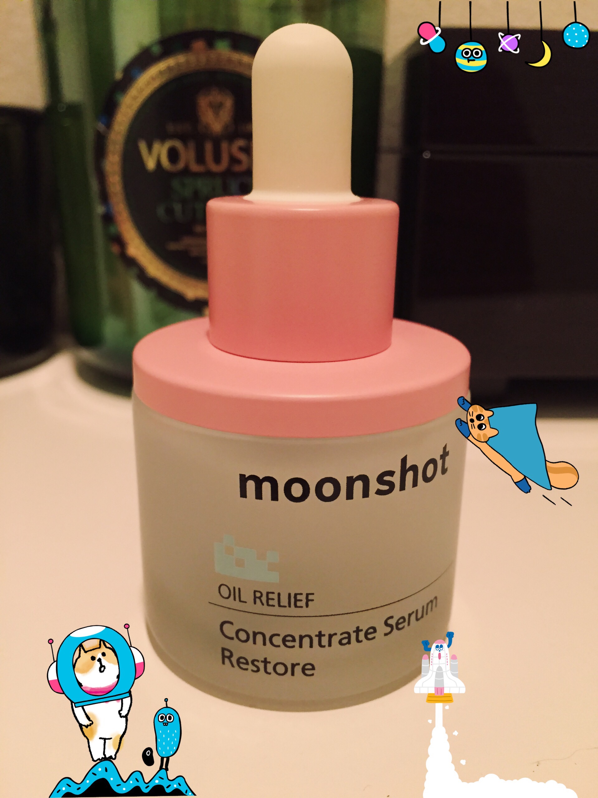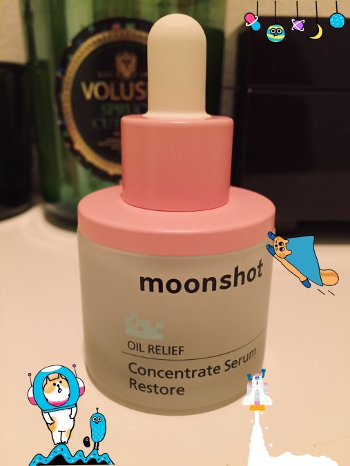 As for the other claims? Zero observable differences in skin. It’s a super clear serum of medium viscosity, the product amount doesn’t last super long (although I do over-use products,) and the full price is $48 (http://en.moonshot-cosmetics.com/condition/line/oil-relief/concentrate-serum-restore.html) which is LUNA-CY!