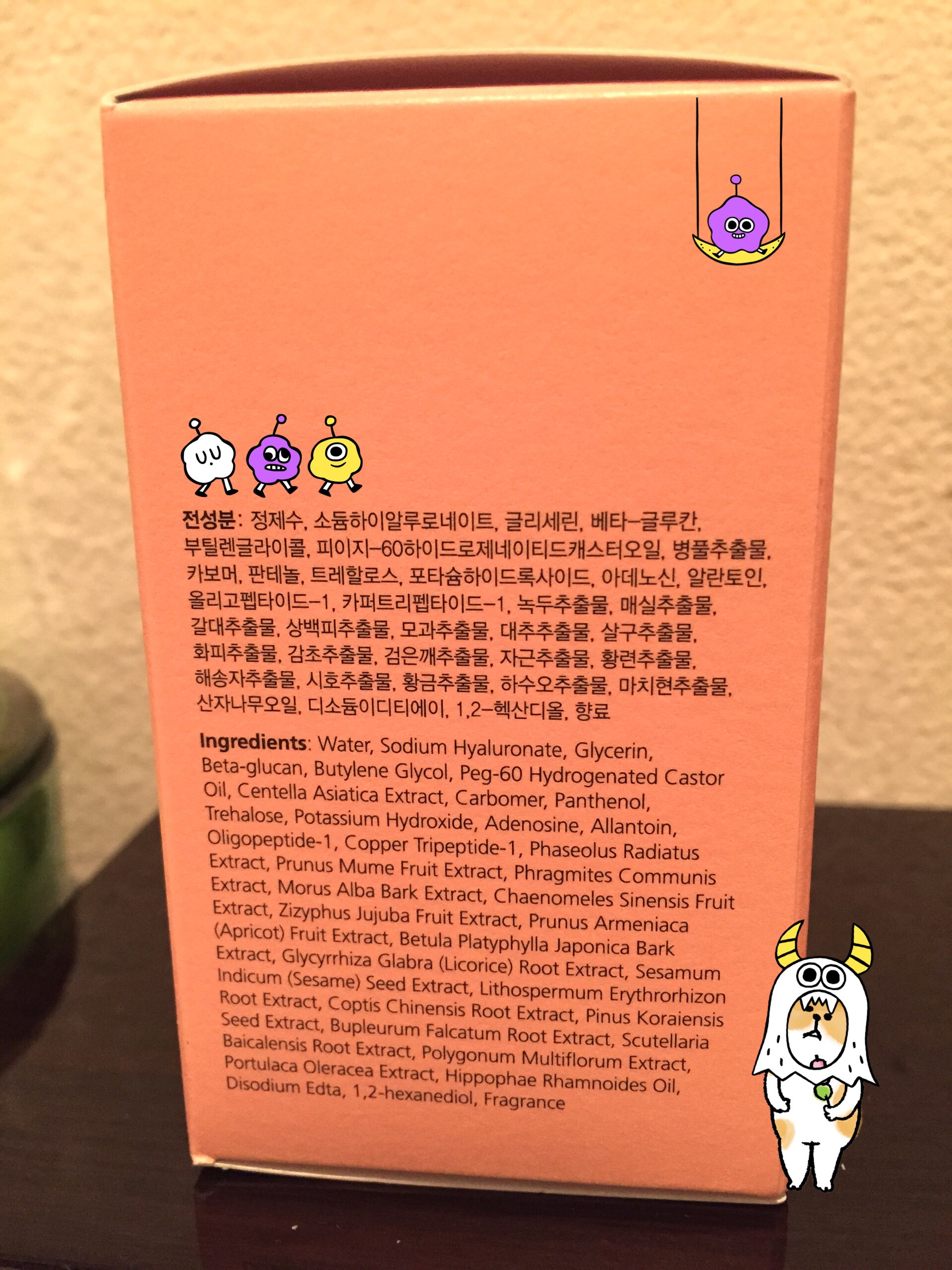 The ass-tronomically long list of ingredients seem promising; lots of extracts of Latin-sounding plants. It also has licorice which is supposed to lighten spots. The second ingredient is sodium hyaluronate which shouldn’t be confused with actual hyaluronic acid. The ingredient here is the salt of the acid. There’s little evidence to prove that rubbing such salt on your face will stimulate collagen production. The third ingredient is beta-glucan….which is good for your immune system…?