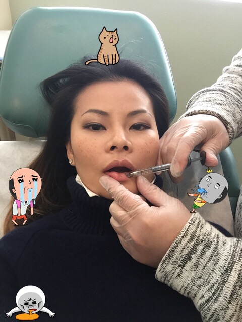 The lip filler on the other hand, is a monster because your lips are much more sensitive. I got 4 novocaine shots: one on each corner of the mouth, top and bottom. This is the exact substance used by dentists before fillings and tooth extractions. It feels exactly like getting it at the dentist except it goes on the top of the lips and not the gums. And it is identical in pain level. In other words it fking HURTS.