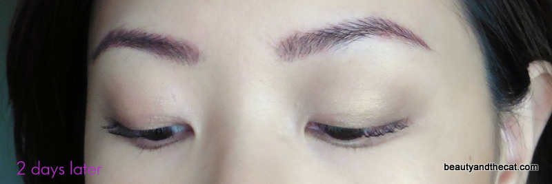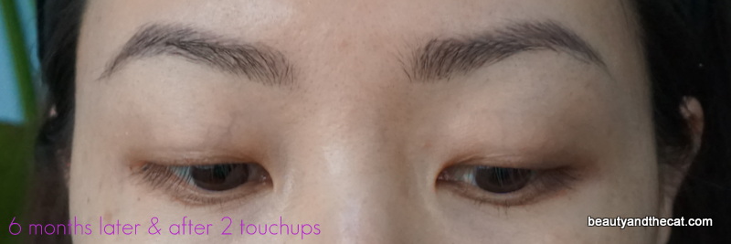 It’s been 2 weeks since then.  My brows initially looked somewhat dark, but they’ve settled into a very natural-looking soft black-brown and look naturally full.  The tattoo resembles soft shading and not the individual brow strokes that seem very popular right now.  I actually prefer shading because that’s exactly how I used to do my brow makeup and because I already have hairs.  In short, LOVE.
