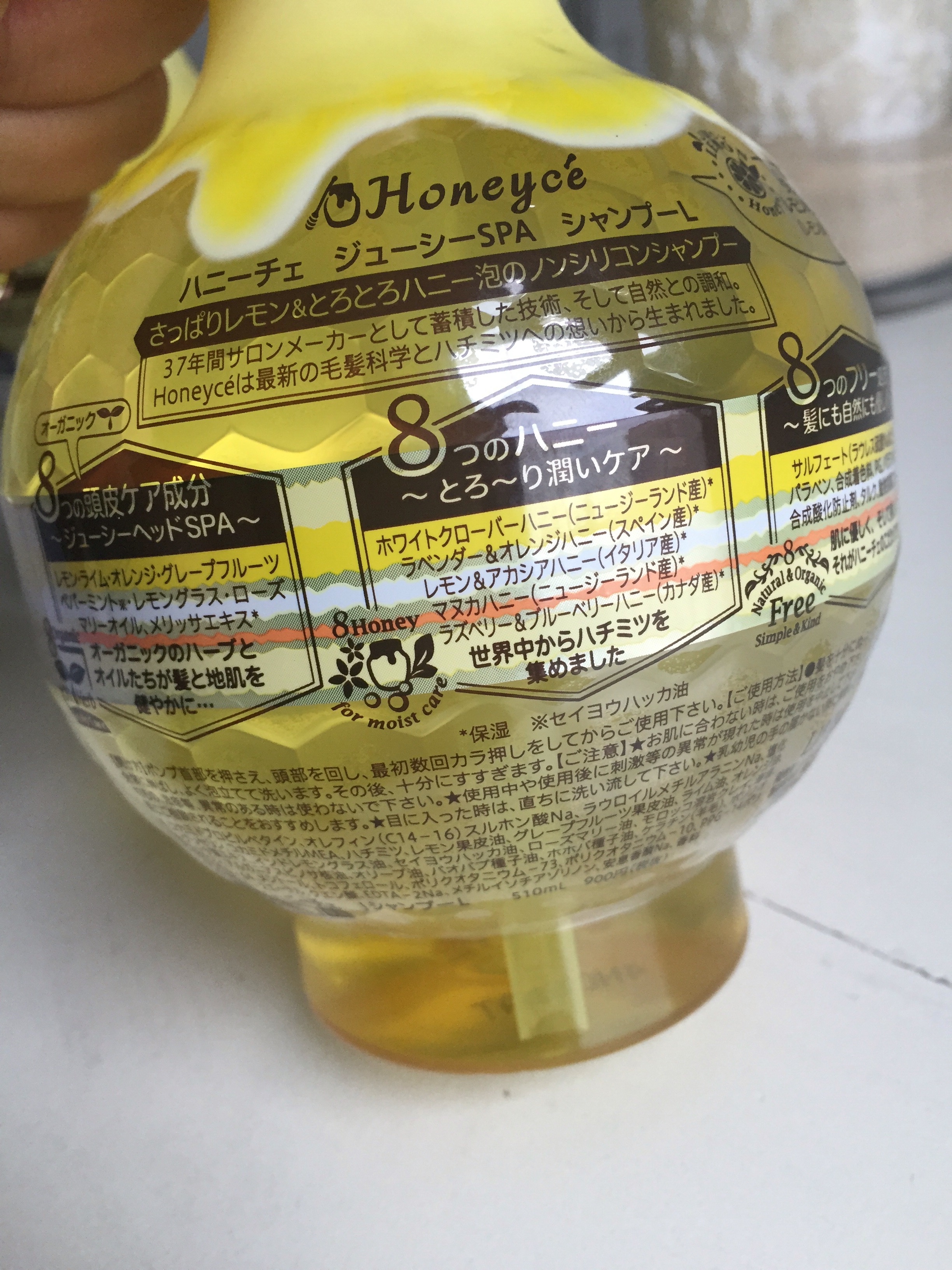 Many things attracted me to this line. The packaging is just delicious. Just fking look at it! It’s yellow (my absolute favorite color,)  it’s in plump round containers with long pumps, and it smells succulent. Don’t confuse this with the orange Honeyce Moisture Repair line where packaging is a deep gold/orange.  This Juicy Spa line has a fruity-but-fresh citrus smell. It’s reminiscent of granny smith apple smell, but less saccharin and cheap-smelling. This is no dishwash soap apple smell. It’s a juicy elegant scent that makes shower time happy time.