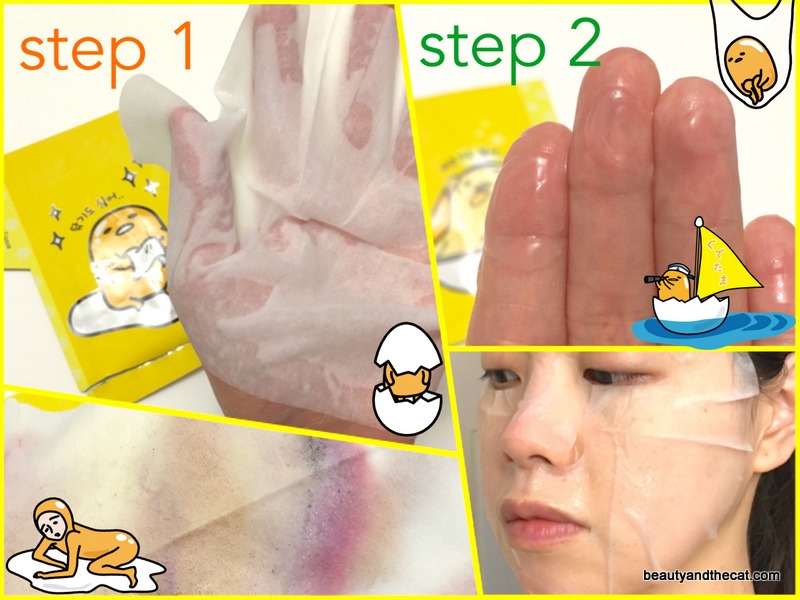 05 Holika Holika Gudetama All Kill Sheet ReviewAs Gudetama demonstrates, this product consists of multiple steps: (1) wipe face clean with the cleansing tissue, (2) apply sheet mask, and (3) do the backstroke. Oops, that last one might not be right…