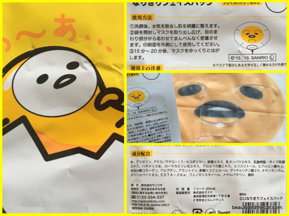 11 Gudetama Narikiri Face Pack Ingredients ReviewIngredients (translated and pasted from Google Translate app, missing commas and all):