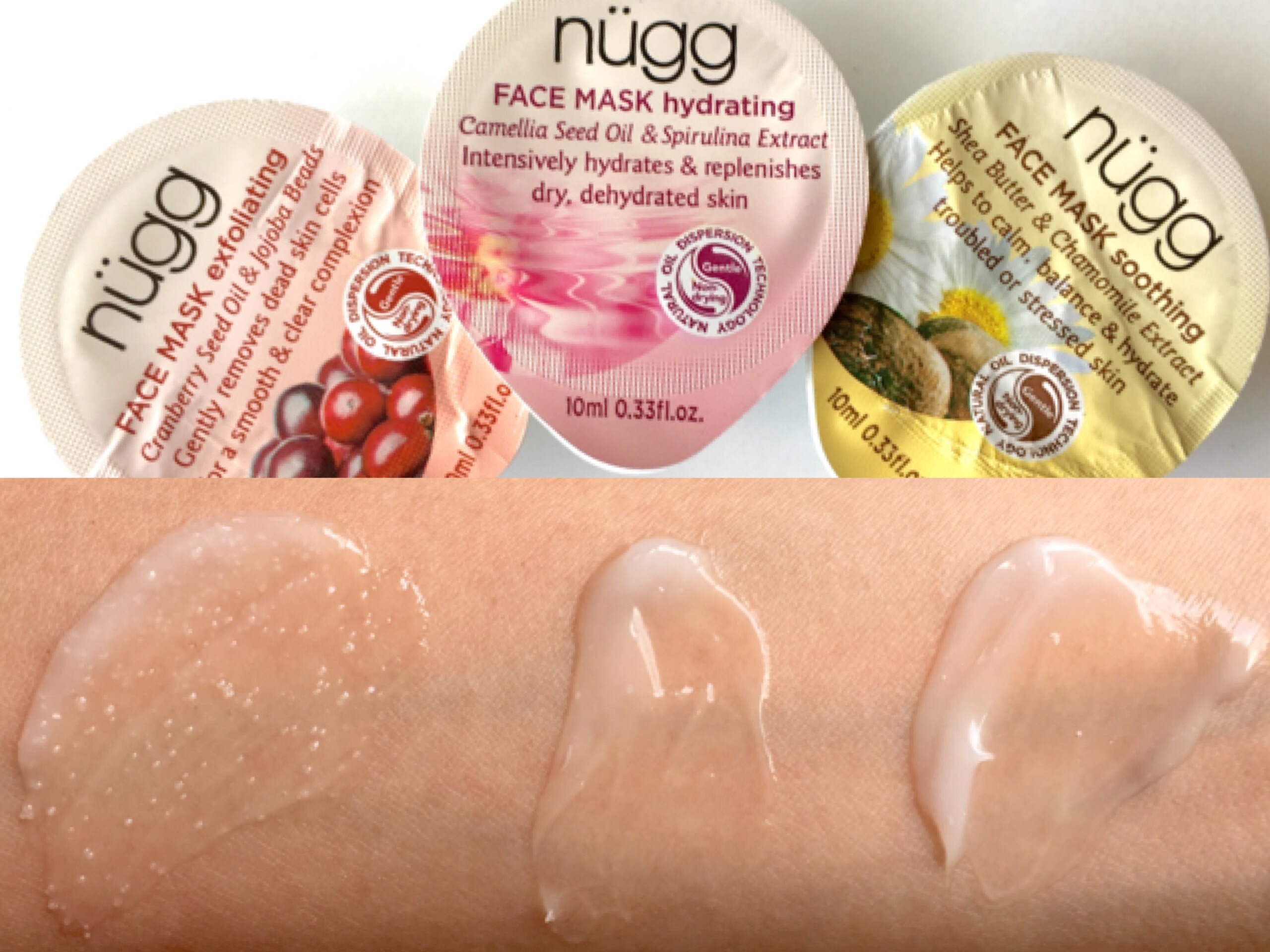 They’re mainly intended to be applied in a thick layer and washed off after 5-10 minutes, but the Soothing and Hydrating ones can also be applied in a thin layer and worn overnight.