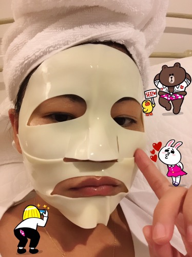 So after you rub that watery jelly like cream, you slap the rubber sheets on to retain the moisture. Honestly this fits more horribly than a stretched out free career fair T-shirt. Wtf. How are you not supposed to overlap the two sheets?? How big of a face am I supposed to have?  This is probably gimmicky as best, because you can easily just find a nice cream to slather on, and wrap your face with those Daiso mask covers and it would be a better fit, cheaper, and achieves the same effect.