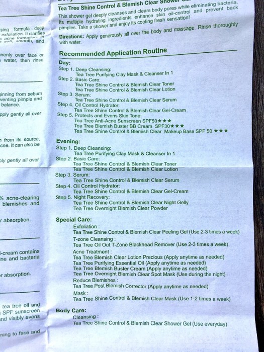 BONUS: Because the U.S. Naruko site is short on English info, here’s some info about Naruko’s Tea Tree Shine Control & Blemish Clear line from the included pamphlet.  Tbh, I usually look up products on Naruko’s Malaysian site, which has English descriptions for everything.
