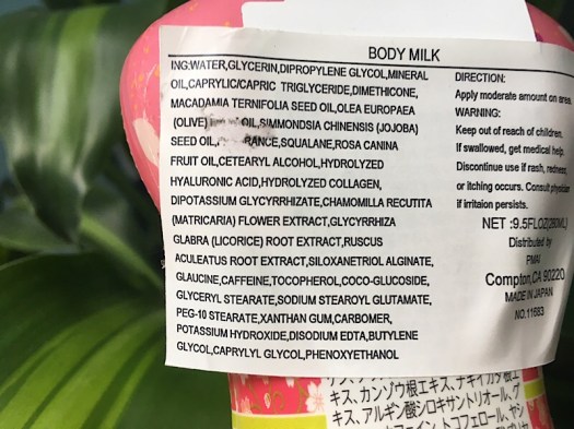 Himegra Premium Body Milk seemed worth a try ($14 for 280 ml on Webichi and about the same at New Kam Man). I’m on a (flailing) no-buy, but replenishing body lotion doesn’t count, does it?