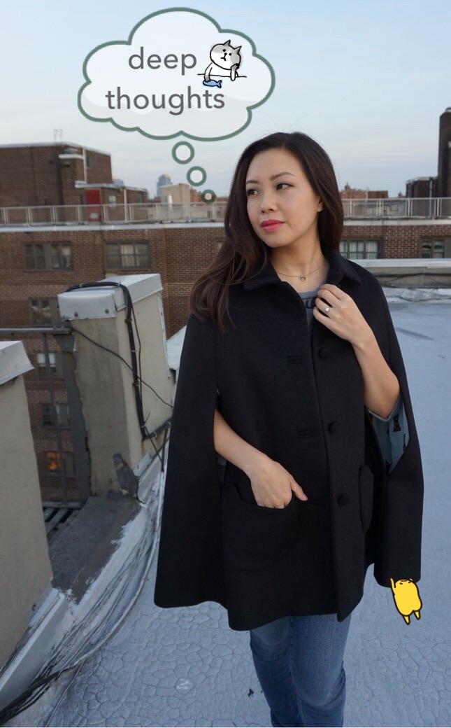 Love how the cape instantly elevates everything. It’s like the sheath dress of outerwear! Everyone compliments you on your fancy look when all you did was throw on one simple piece.