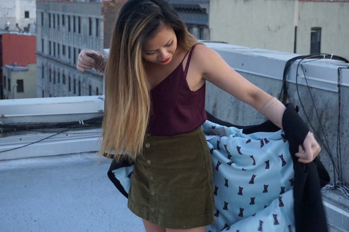 And it serves purrrposes that a coat doesn’t: it keeps you warm without crushing, wrinkling, or hiding your purrrecious outfit underneath. If you’re clever, you can wear it on fall and milder winter days with a bit of layering.
