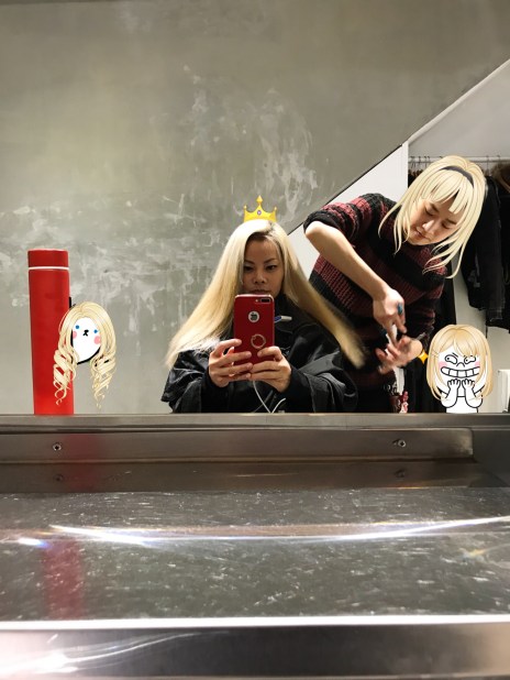 Look at that silky white blonde hair (on me, hers is a sticker.) Ok I realize I look like a vengeful Chinese ghost a la Bride with White Hair but also damn fashun. Honestly I didn’t think I would turn out SO blonde because usually the lifts don’t get as light as this. But this level of achievement was worth every penny of the $440 plus tips. They do take Venmo btw.