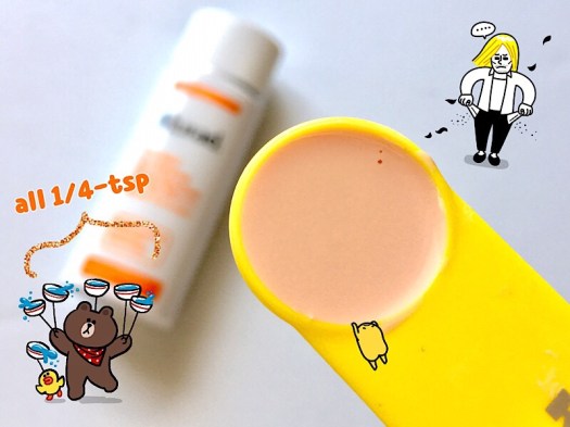 The sunscreen dispenses as a cushy gel-lotion with a light peach color (shake well!). The consistency is reminiscent of Solanoveil Watery Gel (reviewed here) in how it feels very slick and primer-like going on the skin–perhaps just slightly more cushiony than Solanoveil. It sets to a moist and satiny finish (not shiny). Makeup applies well on top, and skin doesn’t dry out. Overall, very cosmetically elegant–a pleasant surprise for a physical filter-only sunscreen.