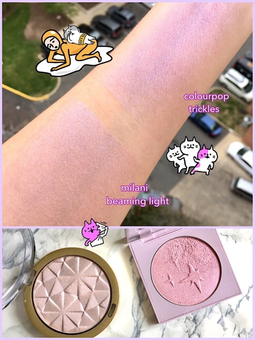 My purrroblem: I have light but very yellow skin (NC15 right now, NC20 in summer). Oftentimes the lavender ends up simply neutralizing my undertones (like a color corrector or one of those Korean tone-up products), making the highlighter look white or baby pink.