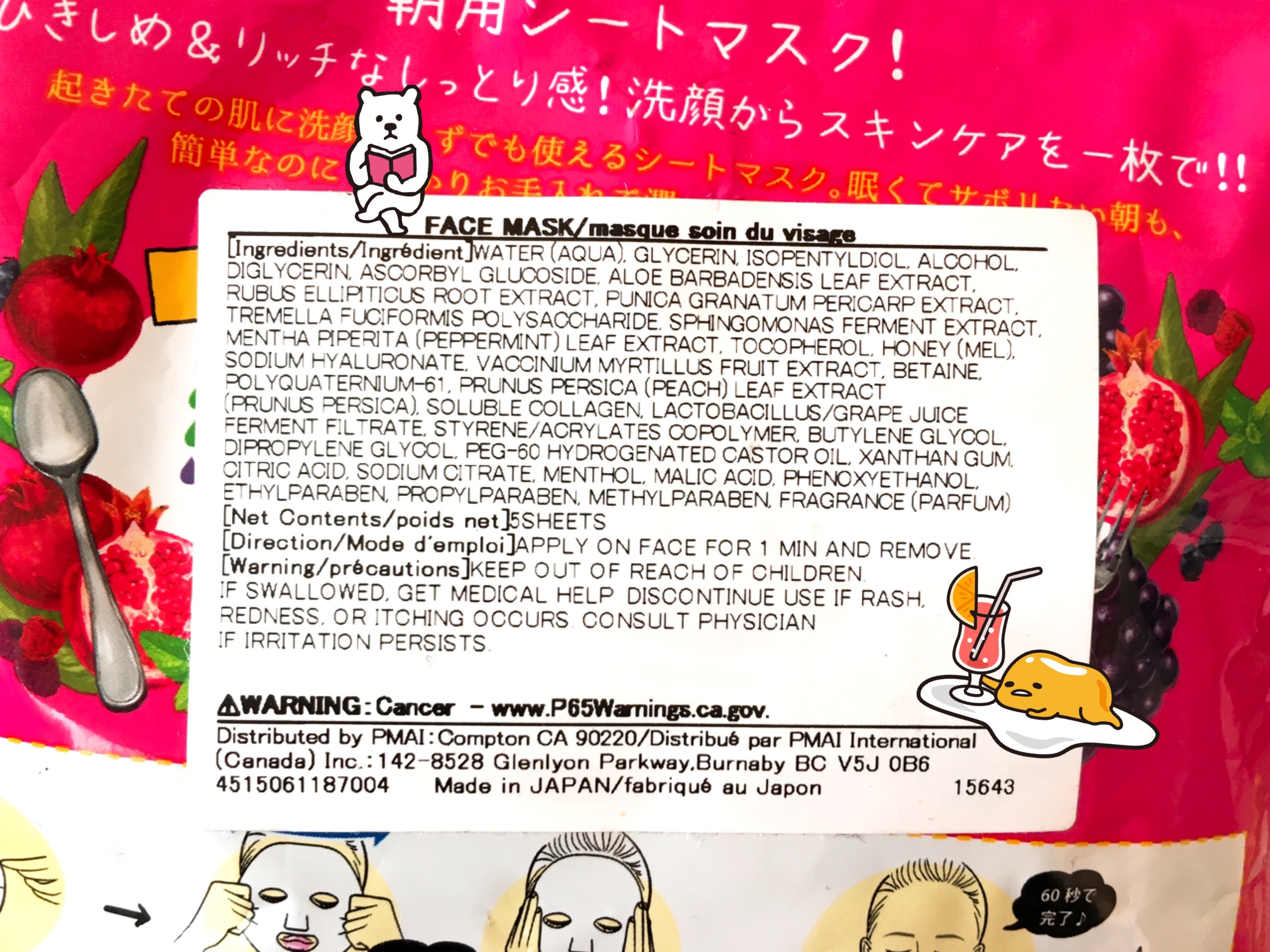 Bonus: it was on sale for $5 at Marukai (a Japanese market) in LA. Berry good deal because $1 per sheet is the max I’m willing to spend on a mask that’s meant to only stay on for 60 seconds! Online, you can find this at Yamibuy ($6) and Kirei Station ($12). Of course, the Costco size is a better value.