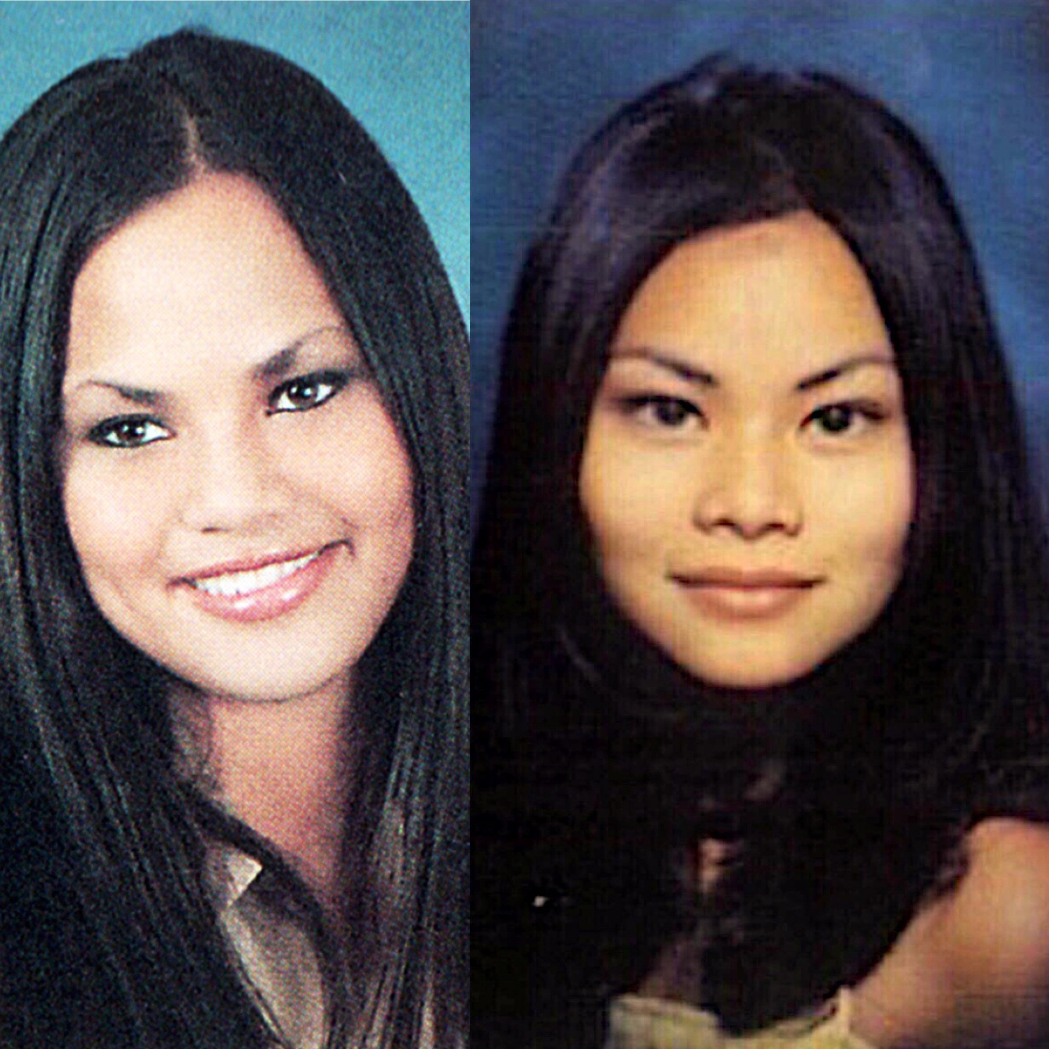 This primer from Becca was initially a small press sample provided to us for free. I used it during Angela’s sister’s wedding and fell in love. I went and bought one full sized bottle and TWO minis for various travel kits. It works great as a light moisturizer but also gives a subtle sheen and my skin looks dewy after application. I don’t use foundation over it so I can’t attest to its effectiveness as a foundation primer. However it’s definitely been a new staple. Doesn’t hurt that this brand frequently collabs with my celebrity doppelgänger Chrissy Teigen. Behold our high school fotos: