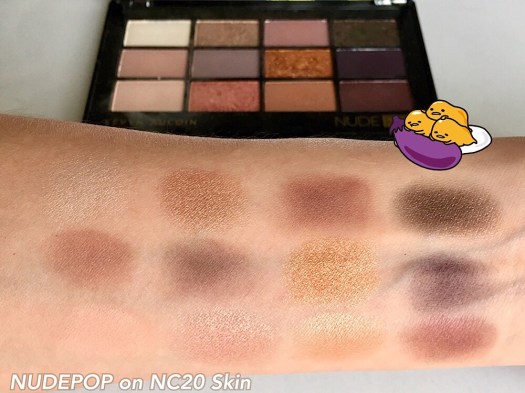 NUDEPOP fills the hole (hueh hueh) left behind. Kevyn Aucoin’s formulas are gawwwgeous to begin with. Ignore the kickback in the pan because it doesn’t result in fallout during application, and the colors are buildable and true to pan. I also love the combination of colors (mauve-ish neutrals) and finishes (matte, satin, metallic foil (glitter if you tap on lightly)) that create an easy office look and spur my creativity. My swatches don’t do it justice.