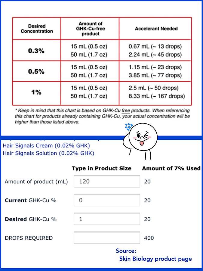 To determine how many drops of the Accelerant to add, use the handy calculator on the product page. With 400 drops in a bottle, the Accelerant can create quite a bit of copper peptide stuphs!