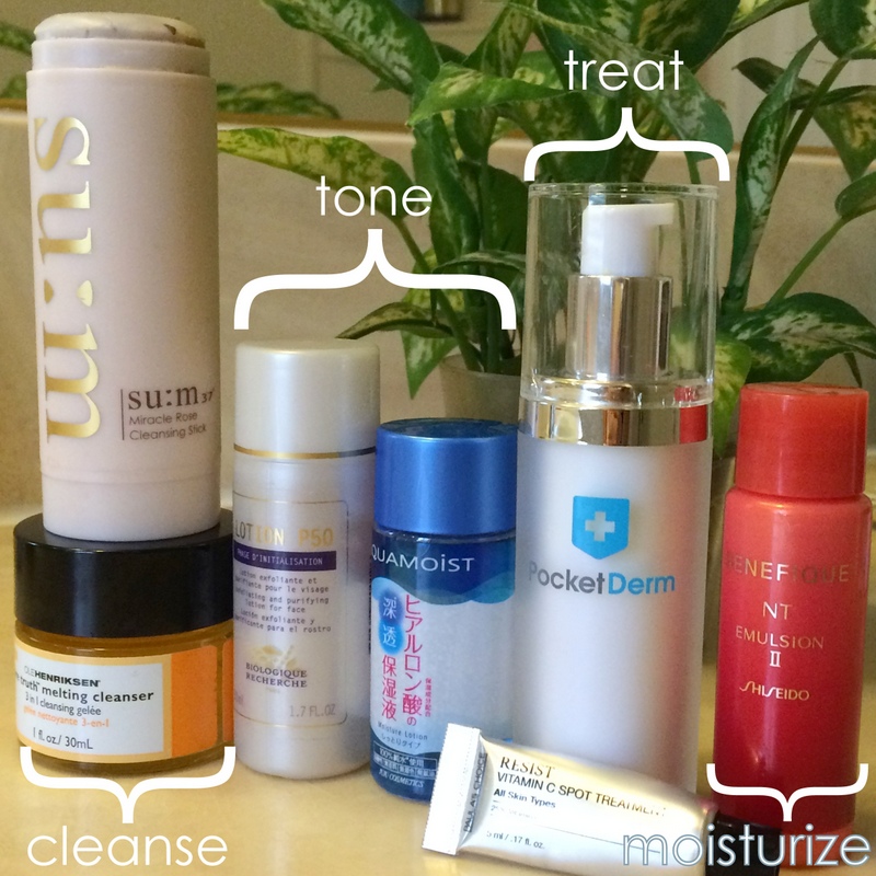 Broken down into components of CLEANSE, TONE, TREAT, MOISTURIZE, the routines in this post list what I’m currently using the majority of the time and why (and also link to my reviews if there is one).