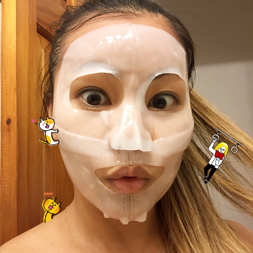 Angela: I’m going to pretend you didn’t just wound the deepest part of my soul. Anyhoo, I got each of us a Pen-Pineapple-Apple-Pen (PPAP) sheet mask. You get a PPAP smear, you get a PPAP smear, EVERYONE gets a PPAP smear!